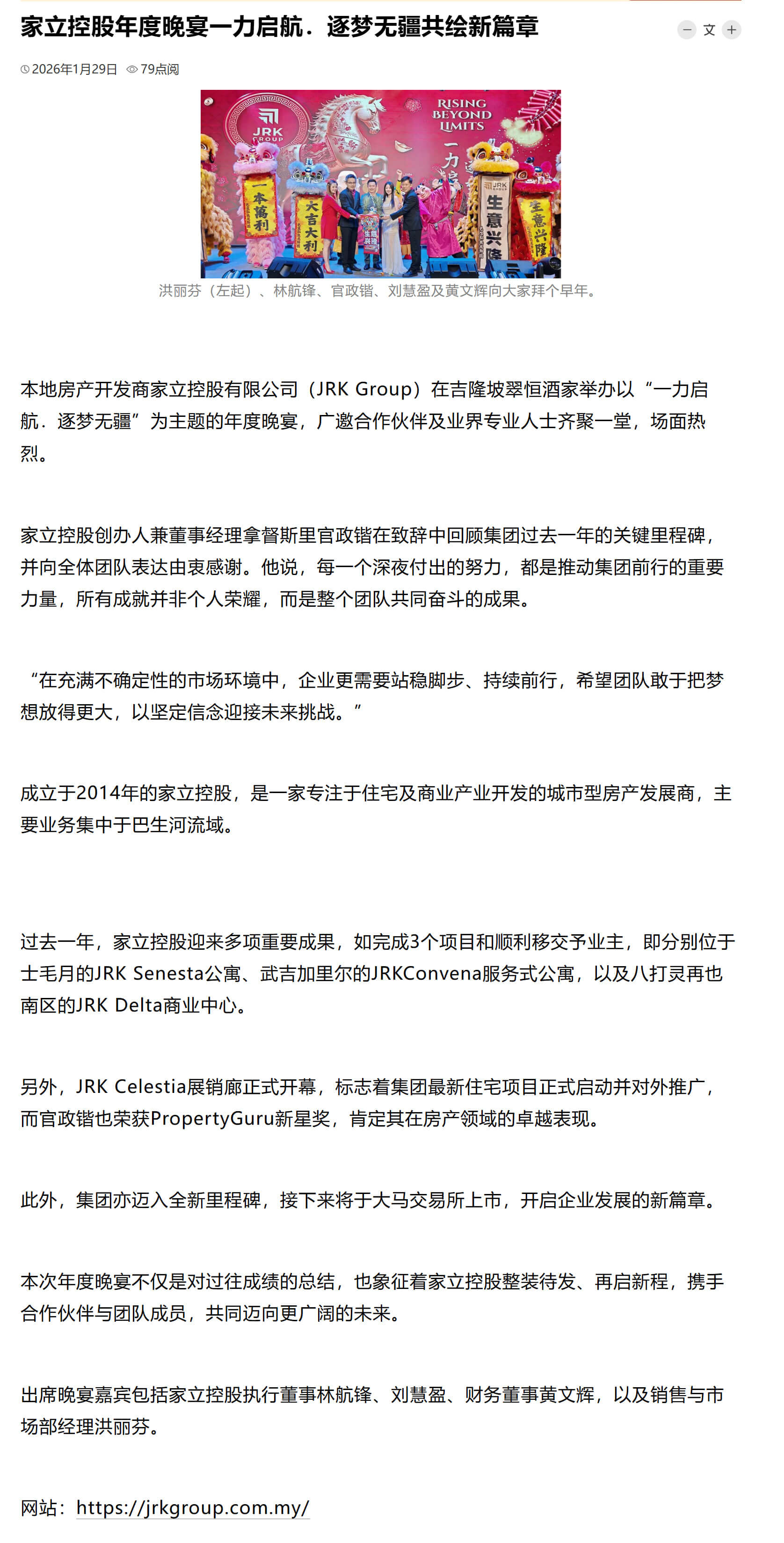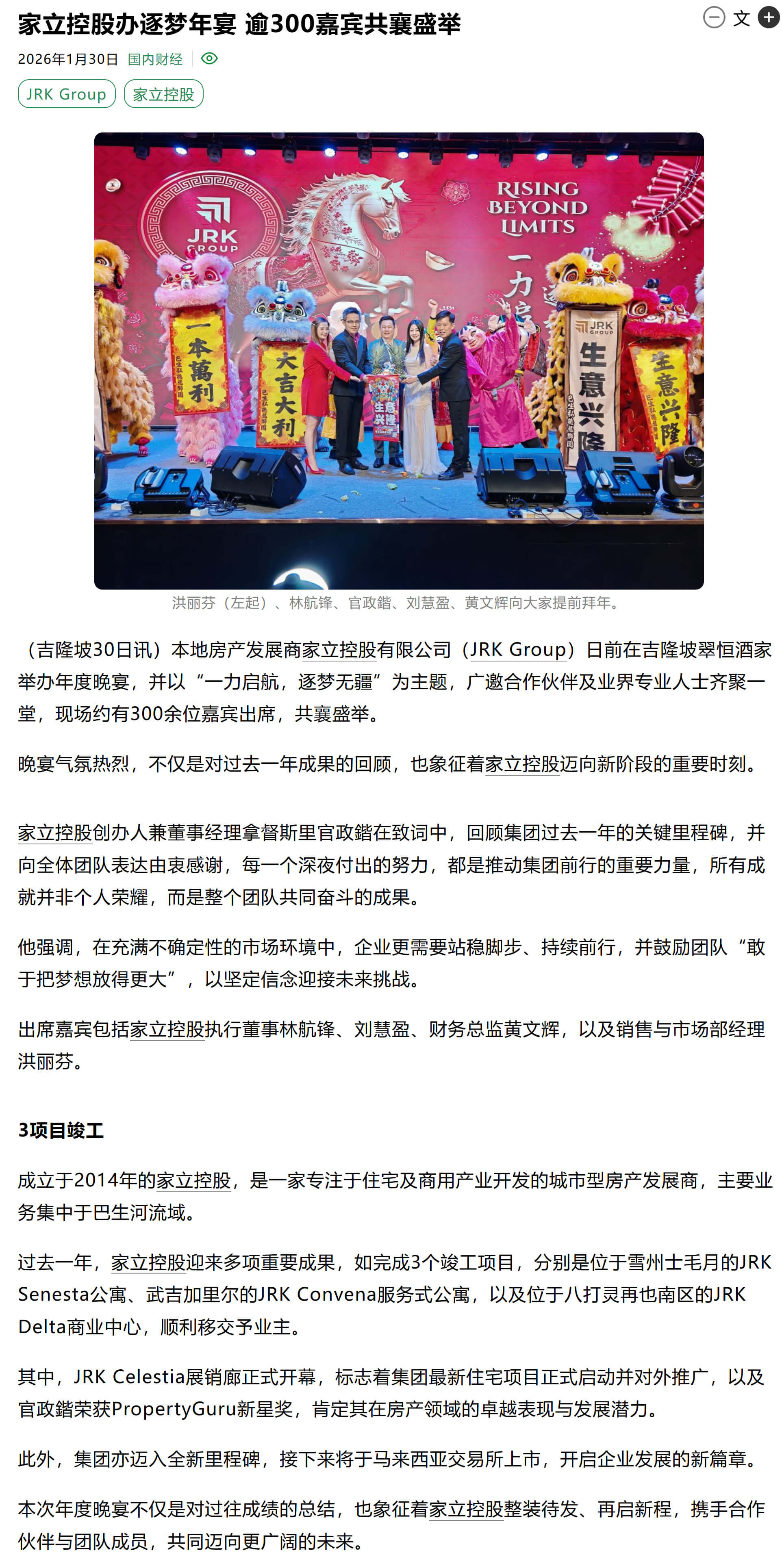 家立控股办逐梦年宴 逾300嘉宾共襄盛举