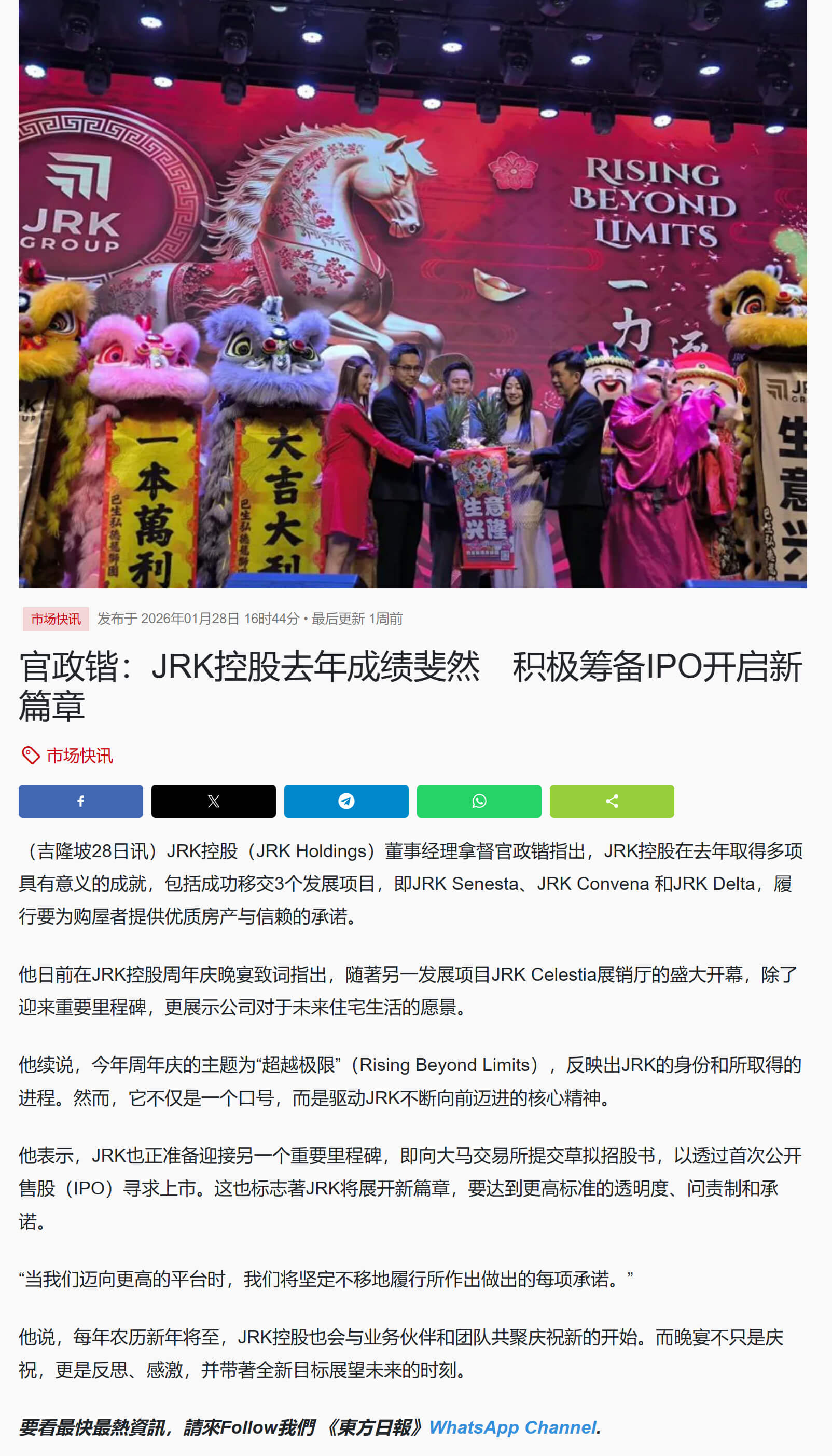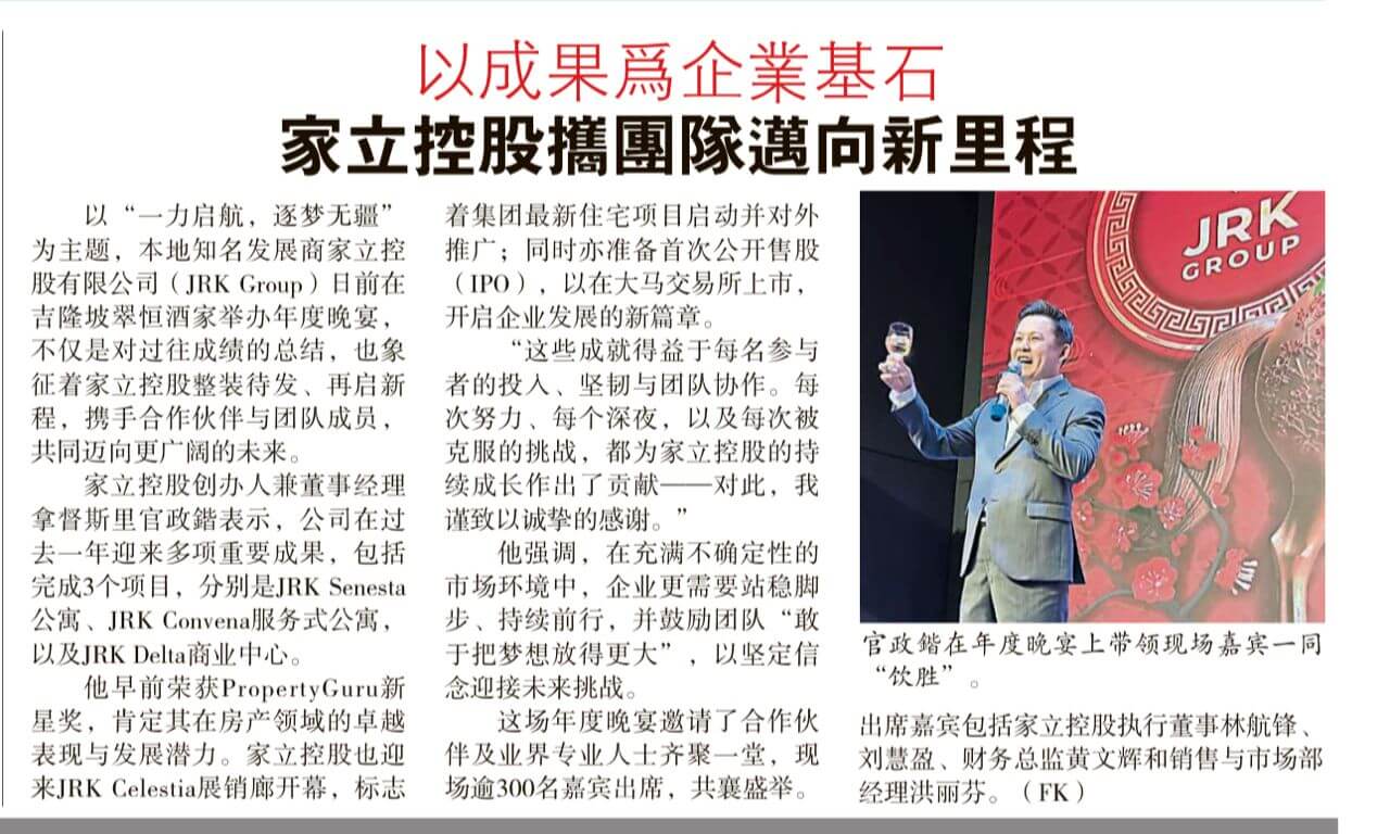 官政锴:JRK控股去年成绩斐然 积极筹备IPO开启新篇章