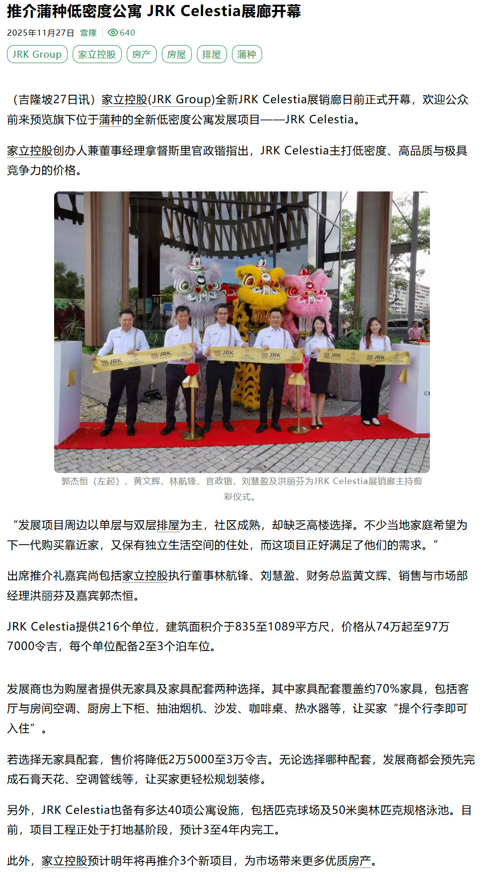 蒲种打造低密度公寓JRK Celestia销售廊开幕